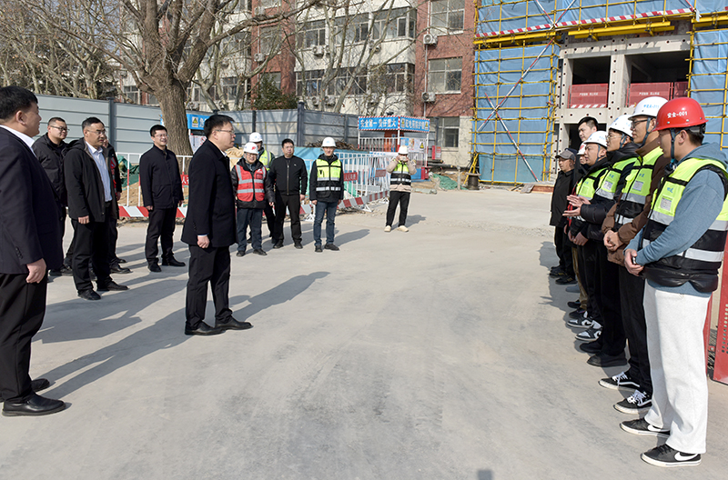 在B5学生公寓施工现场看望慰问工作人员
