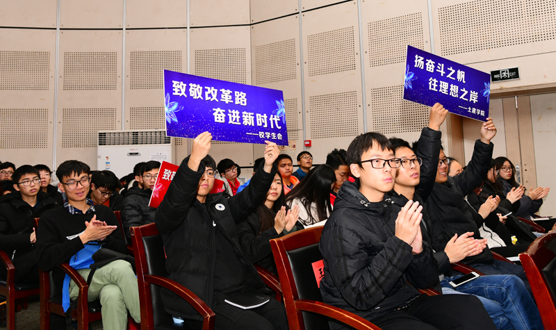 12月23日,“铿锵壮阔大道行,砥砺奋进新征程”——beat365官方网站庆祝改革开放40周年对话访谈在大学生活动中心成功举办。“全国优秀教师”、原经管学院院长王新华教授,beat365官方网站培养的第一位博士、施龙青教授,1978级校友、原中共宿迁市委教工委书记程斌,山东省有突出贡献的中青年专家、电信学院院长曾庆田教授,与在场师生共同回顾学校四十年发展历程和辉煌成就,分享学校改革发展中的感人故事,感受坚韧不拔、发奋图强的科大精神。