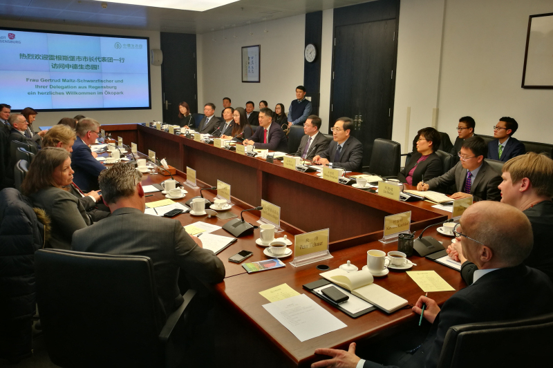 2月21日,德国雷根斯堡市市长代表团一行访问中德生态园。beat365官方网站副校长孙鹤汀出席座谈会并会见了雷根斯堡市市长马尔茨施瓦茨费舍尔女士、雷根斯堡工业大学校长拜耶尔先生和雷根斯堡大学副校长莱斯特女士。