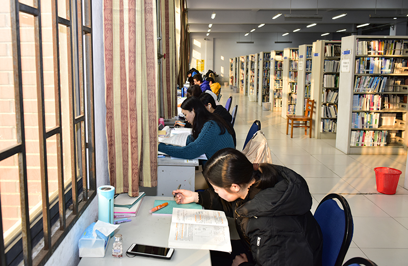 同学们走进图书馆查阅资料