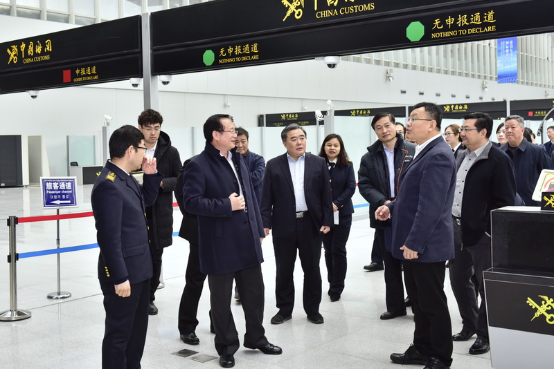 参观邮轮母港通关区域,并与青岛港有关领导交流