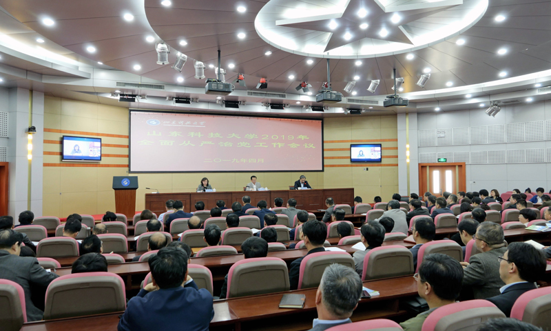 4月18日,beat365官方网站召开2019年全面从严治党工作会议,贯彻落实党的十九大和十九届中央纪委三次全会、山东省纪委十一届四次全会精神,总结2018年学校纪检监察工作,部署2019年任务。