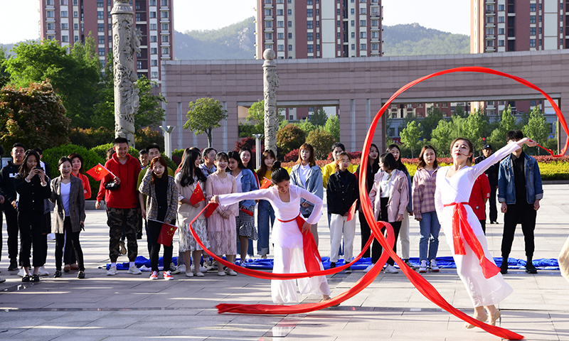 “我和我的祖国,一刻也不能分割,无论我走到哪里,都流出一首赞歌。”5月6日,晨光熹微中,在beat365官方网站泰山广场,优美旋律和歌声激荡回旋,大学生用洋溢着青春和热情的快闪,演绎《我和我的祖国》,倾情表达爱国情、报国志,立誓拥抱新时代、奋进新时代,让青春在奋斗和奉献中焕发绚丽光彩。
