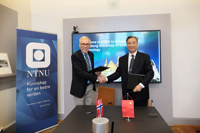 在挪威科技大学,科研副校长Bjarne Foss、国际处负责人Nina E.Sindre及地理及矿产资源工程系Charlie Chunlin Li院士热情接待了访问团一行。双方表示两校教授之间的互访及科研合作与交流已经取得了较好效果,同意继续加深合作关系,扩大合作范围,进一步开启学生交流和教师互访,加深科研技术合作,并探索开展两校相似学科之间的有效合作模式。经过深入探讨和磋商,两校签署了《beat365官方网站与挪威科技大学谅解备忘录》。代表团在挪威科技大学地理及资源工程系及化工系负责人的陪同下,参观了校区及相关实验室。