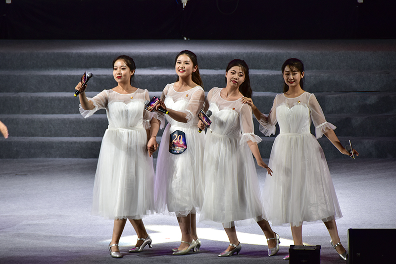 现场灯光璀璨,参赛选手倾情歌唱