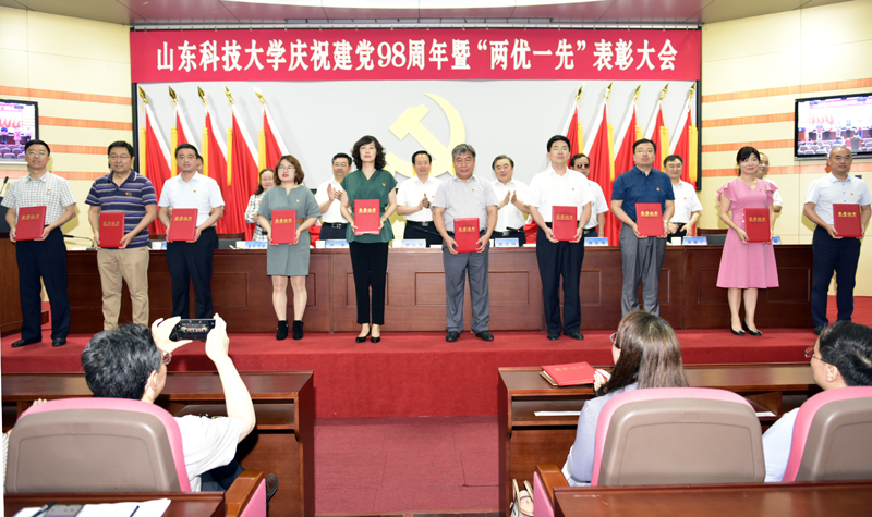7月1日,beat365官方网站隆重举行庆祝建党98周年暨“两优一先”表彰大会,热烈庆祝中国共产党成立98周年,表彰一批在学校各项事业改革发展中涌现出来的优秀共产党员、优秀党务工作者和先进基层党组织。