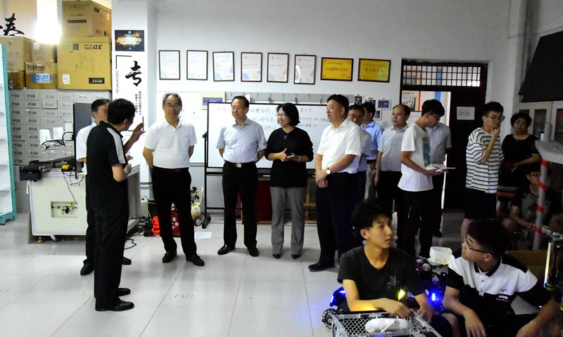 曲道奎、王国法、谢龙目一行还参观了自动化学院大学生创新基地、山东省机器人与智能技术重点实验室等场所。在大学生创新基地,李玉霞向客人介绍了正在备战全国大学生机器人大赛的学生战队,曲道奎、王国法、谢龙目一行在听闻师生们在创新基地经常备战到深夜的情况后,高度评价了学生团队创新精神和敢于拼搏的进取意识。(记者:任波 责编:韩洪烁)