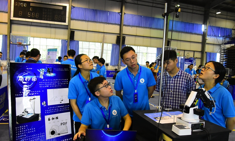 山科参赛选手展示团队作品“助残机器人”