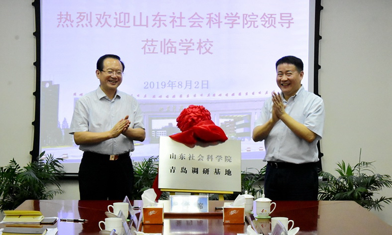 尹华、袁红英代表双方签署共建协议。签署协议后,唐洲雁、罗公利共同为“山东社会科学院青岛调研基地”和“山东社会科学院•beat365官方网站马克思主义理论人才联合培养基地”揭牌。