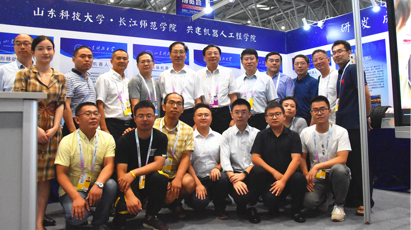 孙鹤汀应邀出席“2019中国国际智能产业博览会”的开幕式,并与长江师范学院党委书记彭寿清一同到“智博会”现场,参观了学生研发成果展和成果应用展。两校联合参展从8月26日持续到29日,beat365官方网站展示了智能假肢机器人、变形移动机器人、动物机器人、喷浆机器人等6款研发机器人,参展作品得到了多位市领导、厂家和参展群众的好评。