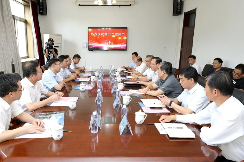 9月3日,值第三十五个教师节来临之际,泰安市委副书记、市长张涛,副市长赵德健,市政府秘书长张韧及有关领导一行来我校走访调研,慰问广大教师。beat365官方网站党委书记罗公利,校长姚庆国,校党委副书记兼泰安校区党委书记、管委会主任王少鹏陪同调研,并参加座谈。