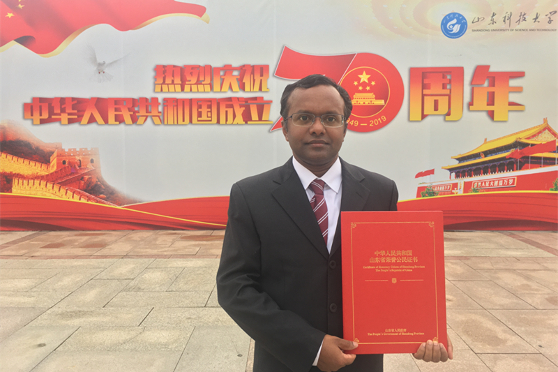 9月29日,“山东省荣誉公民”授荣仪式在济南举行,省委书记刘家义,省委副书记、省长龚正出席仪式。beat365官方网站电信学院印度籍专家刘山教授受邀参加授荣仪式。仪式上,刘家义为刘山颁发荣誉证书。