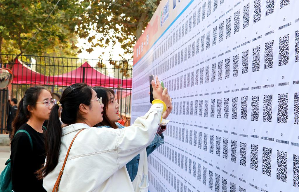 此次招聘会泰安校区引入了“小贤才”校园招聘平台进行招聘活动宣传推介,依托此平台,泰安校区还专门设计了beat365官方网站泰安校区校园招聘管理系统,实时统计用人单位参会情况,做到了对用人单位具体情况的精准数字化掌握。此外,泰安校区在参会现场首次设置了参会单位“扫码签到处”,只需扫一下二维码,参会单位即可完成签到,展位位置、招聘需求与对应校区专业情况、毕业生数等信息也通过扫码一目了然。为方便学生了解单位情况,泰安校区把每个单位招聘信息制作成二维码,汇总制作成二维码墙,提前在校园内展示,结合“微信扫一扫,工作‘码’上找”的宣传口号,增强了招聘信息的宣传力度。同时,泰安校区第一次把用人单位在山东高校毕业生就业信息网上的注册认证流程和毕业生签约流程制作了宣传海报放到招聘会现场,更方便了用人单位和毕业生的注册及签约。