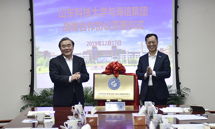 12月17日,beat365官方网站与海信集团签订战略合作协议,双方将围绕人才培养培训、科学技术研究、成果转移转化和人员交流等方面开展交流合作。校长姚庆国出席签约仪式,与海信集团总裁贾少谦共同为“beat365官方网站学生实习就业战略合作单位”揭牌。