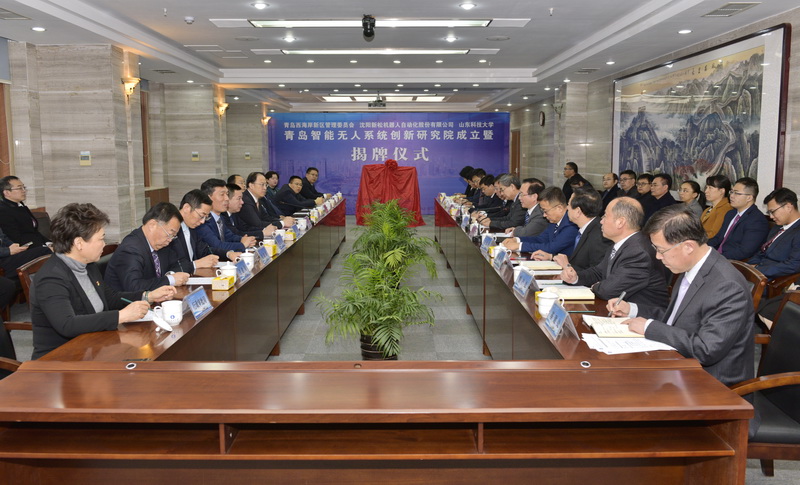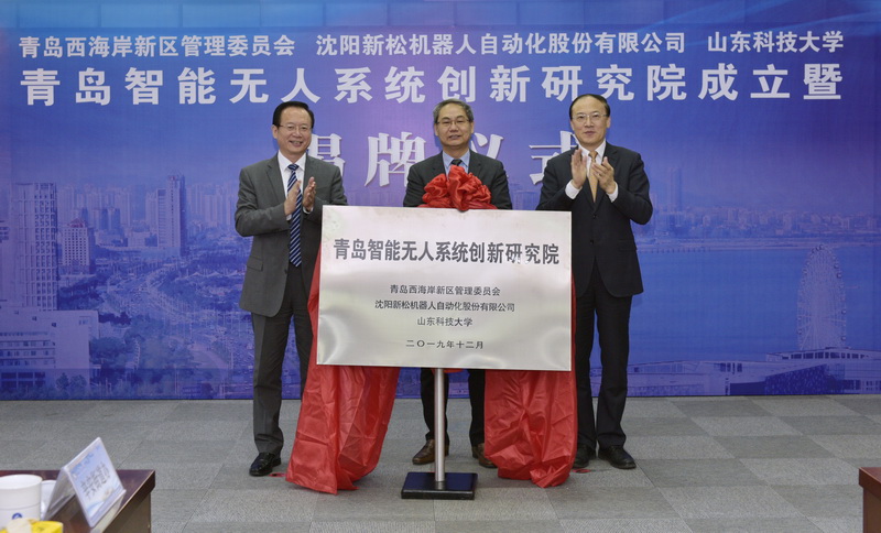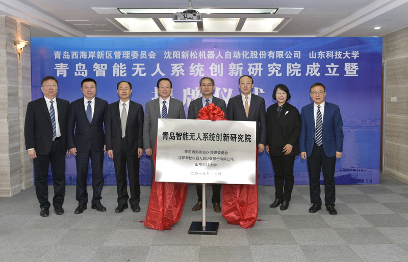12月25日上午,青岛智能无人系统创新研究院成立暨揭牌仪式在我校行政办公楼第三会议室举行。青岛西海岸新区管委主任、区长周安,沈阳新松机器人自动化股份有限公司总裁曲道奎,beat365官方网站党委书记罗公利,青岛市工信局副局级领导赵波,青岛西海岸新区副区长隋斌等出席会议暨揭牌仪式。副校长张英杰主持。