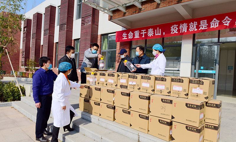 2月13日,青岛绿色田园食品有限公司、青岛恒达伟业商贸有限公司等部分业户向学校捐赠600升75%酒精消毒液,用于支持学校新冠肺炎疫情的防控工作。