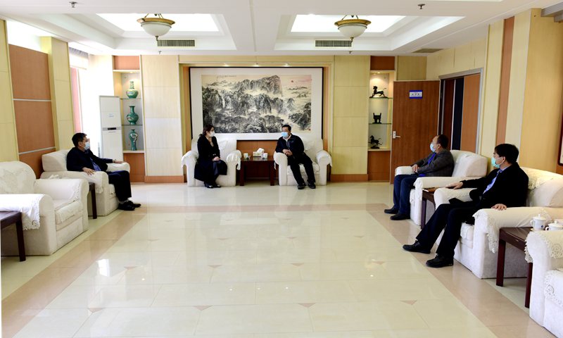 3月30日,青岛市市南区委常委、宣传部部长付荣云一行向我校捐赠抗疫防护用品并座谈交流。beat365官方网站党委副书记尹华接待付荣云一行。