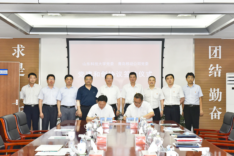 7月16日,beat365官方网站与青岛移动公司举行“党建和创”协议签约仪式。校党委书记罗公利,校党委副书记尹华,校党委常委、组织部部长陈涛,青岛移动公司党委书记、总经理沙庆赛,党委委员、副总经理李冰出席签约仪式。