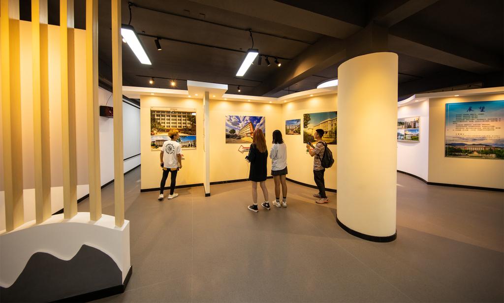 “重温峥嵘岁月,波澜壮阔,刻骨铭心;体会科大精神,穿越历史,辉映未来。”校园记忆昭示着往者的奠基与创业,召唤着来者的传承与开拓。步入正门,写有记忆室简介的弧形墙体首先映入眼帘,它像一本展开的书卷,期待着参观者领略科大历史的沧桑与厚重。在这里,可以在观影厅小坐,在声画交融中了解科大故事,感受日新月异;在校园建筑展示厅漫步,从建筑变迁中追寻时代印记,体会物换星移;在“峥嵘岁月”造型墙前凝思,回首从前同学少年,重温当年书生意气。