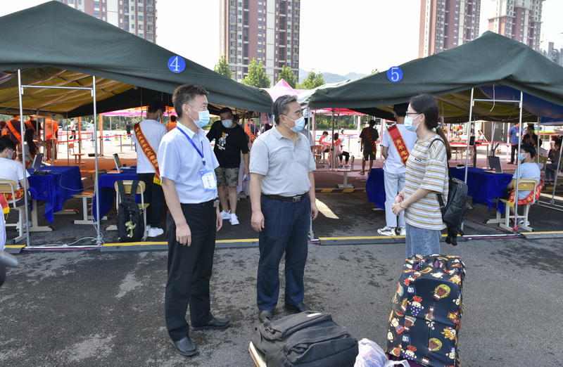 9月5日,校党委书记罗公利、校长姚庆国及相关部门负责人分别来到迎新现场,看望正在忙碌的工作人员、学生志愿者和报到的新生,了解研究生新生报到情况,叮嘱现场工作人员和学生志愿者在做好疫情防控工作的同时务必做好迎新各项服务工作,鼓励广大新生珍惜研究生时期的宝贵时光,不断提高专业素养和综合素质,只争朝夕、不负韶华,勇做走在时代前面的奋进者、开拓者、奉献者,更好地肩负起时代赋予的历史责任。