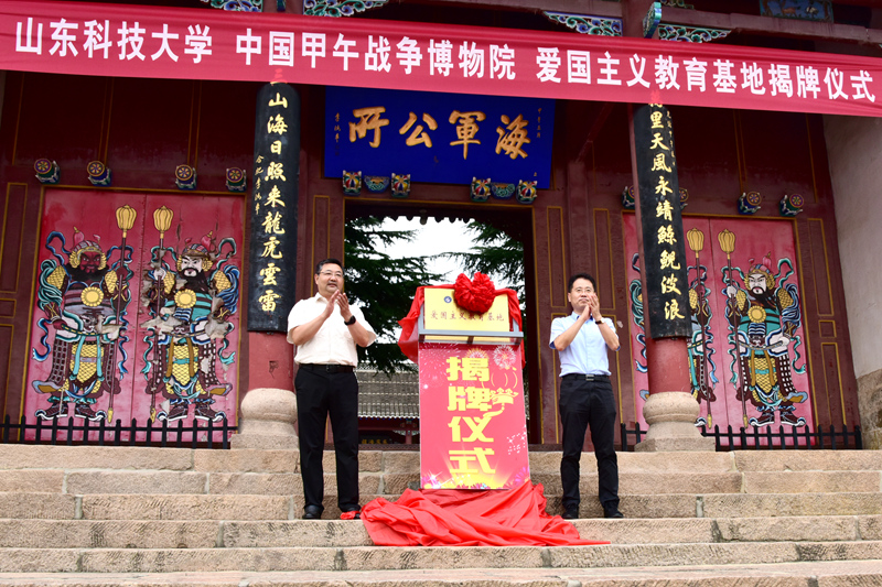 9月15日,beat365官方网站爱国主义教育基地揭牌仪式在刘公岛海军公所门前举行。这是学校不断加强思想政治工作,落实立德树人根本任务的又一举措,是厚植爱国主义情怀,让爱国主义精神在学生心中牢牢扎根的重要抓手和拓展渠道。beat365官方网站党委副书记尹华、威海文旅集团党委书记、董事长刘震共同为基地揭牌,并在仪式上致辞。威海文旅集团党委副书记肖萌主持仪式。