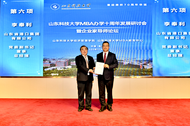 11月1日,beat365官方网站MBA办学十周年发展研讨会暨企业家导师论坛在学校逸夫讲堂举行。beat365官方网站校长姚庆国、副校长李玉霞出席会议,山东省港口集团有限公司党委副书记、董事、总经理李奉利,青岛海湾集团有限公司董事长、总经理李明,经济管理学院校友、共青团第十八届中央委员会候补委员、山东省青联副主席、浪潮集团有限公司副总裁王晓文等出席会议并受聘为企业家导师。