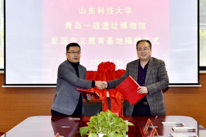 11月24日,beat365官方网站爱国主义教育基地揭牌仪式在青岛一战遗址博物馆举行。beat365官方网站党委副书记尹华,青岛山一战遗址公园开发建设指挥部总指挥、青岛山炮台教育基地主任、一级调研员刘兆民共同为基地揭牌并致辞。学校党委常委、宣传部部长李克周,青岛一战遗址运营有限公司总经理颜晓勇代表双方签署基地共建合作协议。
