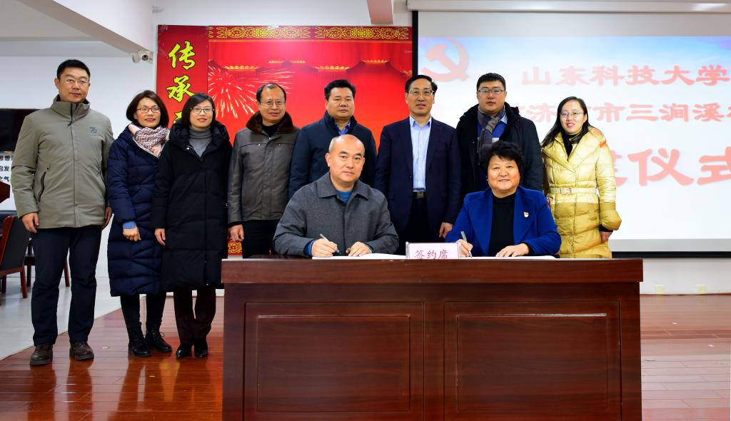 beat365官方网站副校长兼济南校区党工委书记、管委主任孙鹤汀,三涧溪村党委书记高淑贞共同为基地揭牌。济南校区管委副主任兼学团工作部主任郭加书和高淑贞分别代表双方签署合作协议。