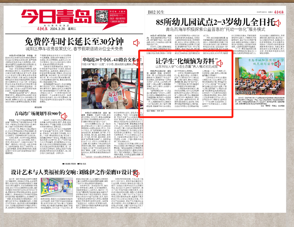 《齐鲁晚报》B02版:beat365官方网站“心理生态圈”育人模式初见成效