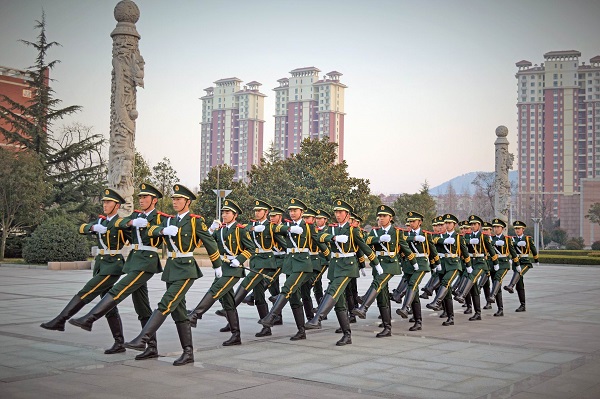 每日日出、日落之际,校园里都会出现这样一些身影。他们气宇轩昂地走在校园里,十分引人注目;他们守护着鲜艳的五星红旗,不曾离开;他们坚持不懈地训练,响亮的口号在我们耳畔回荡;五星红旗和崭新的制服在阳光下更加鲜艳,他们脸上洋溢着的是无比的激动和自豪。
