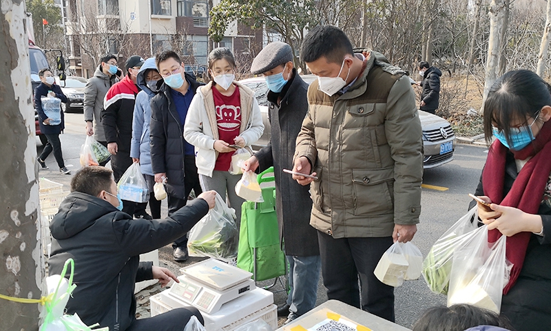 供应馒头的地点,设在住宅区与办公区的中间地带。这里是后勤临时建立的一个便民服务点,除供应馒头外,每天供应新鲜蔬菜、肉蛋奶、水果等生活必需品。后勤急大家所急,想大家所想,把“菜篮子”拎到了职工家门口,大家不出校门,就可以选购到质优价廉的生活品。