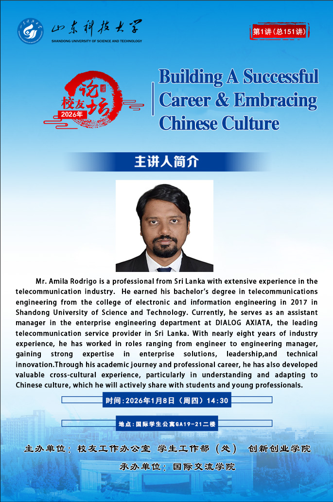 “校友论坛”2026年第1讲(总151讲):Building A Successful Career & Embracing Chinese Culture