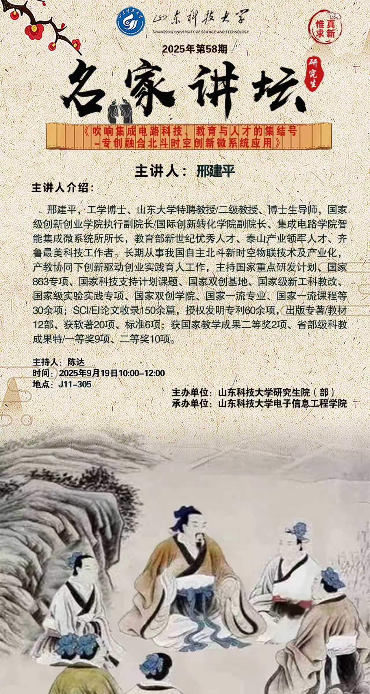 “名家讲坛”2025年第58期:吹响集成电路科技、教育与人才的集结号-专创融合北斗时空创新微系统应用(总1063期)