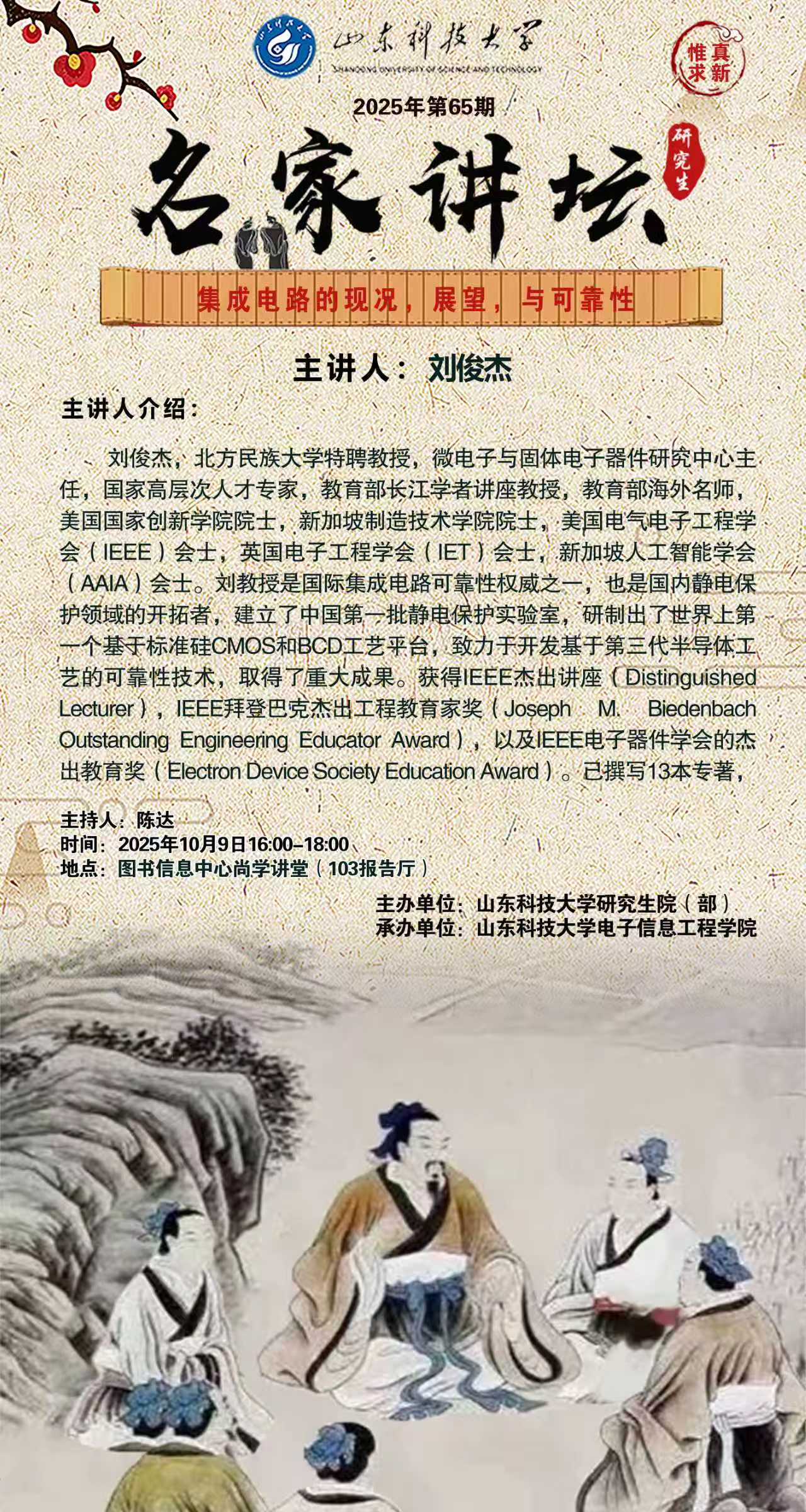 “名家讲坛”2025年第65期:集成电路的现况,展望,与可靠性(总1070期)