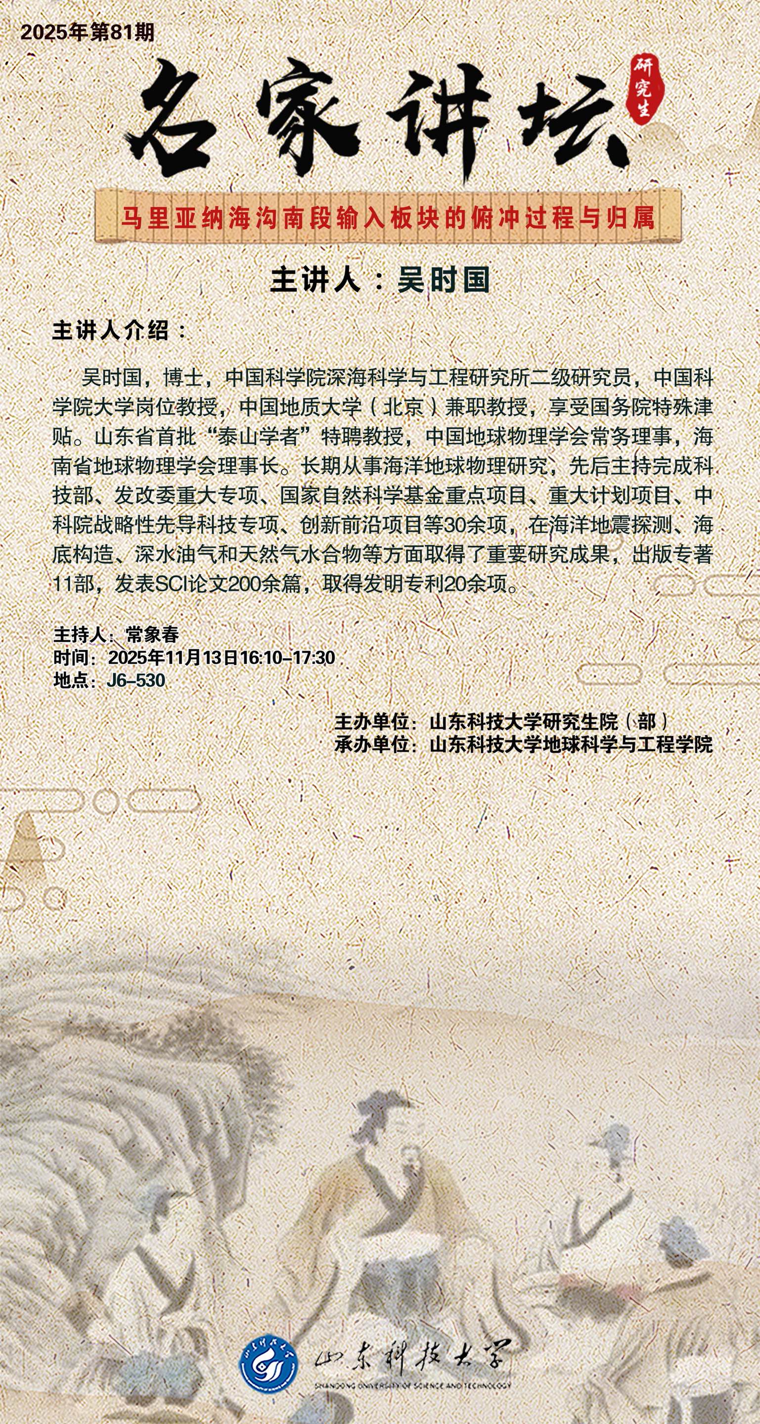 “名家讲坛”2025年第81期:马里亚纳海沟南段输入板块的俯冲过程与归属(总1086期)