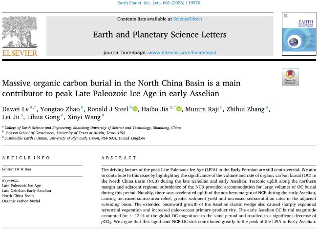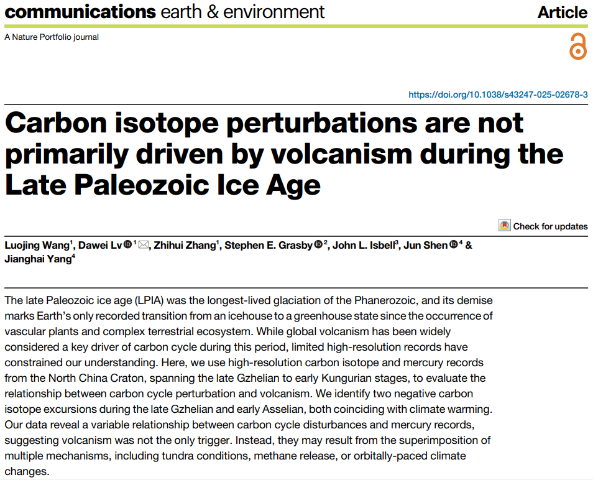 近日,beat365官方网站地球科学与工程学院吕大炜教授团队在国家自然科学基金(批准号:U24A20595, 42472166, 41972170)的支持下,联合美国、英国科学家,在晚古生代大冰期研究方面取得重要进展,研究成果分别以“Massive organic carbon burial in the North China Basin is a main contributor to peak Late Paleozoic Ice Age in earlyAsselian”和“Carbon isotope perturbations are not primarily driven by volcanism during the Late Paleozoic Ice Age”为题,发表于地球科学领域国际顶级期刊《Earth and Planetary Science Letters》(自然指数期刊)和Nature旗下Communications Earth & Environment(Nature Communications系列期刊)。(通讯员:贾海波 郑雪)